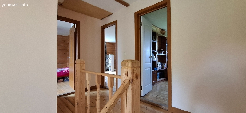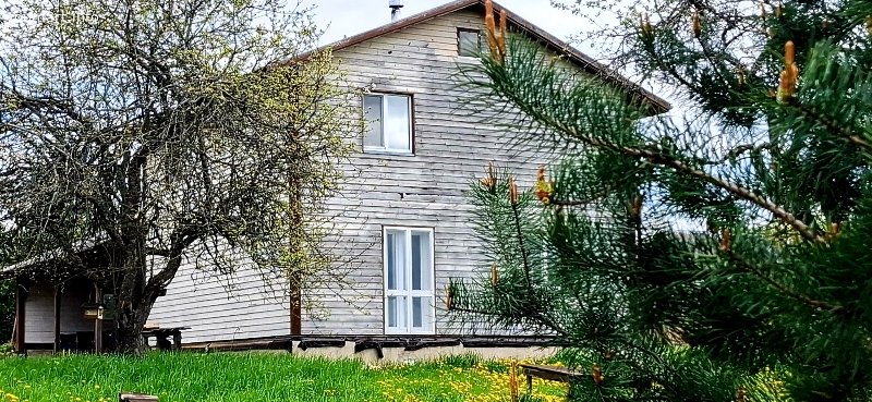 УЮТНЫЙ ДВУХЭТАЖНЫЙ ДОМ НА УЧАСТКЕ 60 СОТОК В МАЛОНАСЕЛЕННОЙ ДЕРЕВУШКЕ У ЖИВОПИСНОГО ОЗЕРА, РЯДОМ С ПУШКИНСКИМ ЗАПОВЕДНИКОМ В ПСКОВСКОЙ ОБЛАСТИ. К продаже предлагается двухэтажный, высоко и достаточно уединенно расположенный, рядом с живописным озером, уютный деревянный дом на участке 60 соток ЛПХ земли поселений с возможностью расширения. Очень теплый добротный дом построен в 2015 году по Северо - Канадской каркасной технологии для сурового климата, с монолитным противопожарным известково - стружечным наполнением и толщиной стены 38 см., наполнение стен предусмотрено так же против грызунов, находится в малонаселенной очаровательной деревушке Лябино Новоржевского р-на у чистейшего живописного озера, по соседству с чудесным смешанным грибным и ягодным лесом, совсем рядом с Государственным мемориальным и природно-ландшафтным музеем заповедником имени А.С. Пушкина, 17 км. по асфальтированному шоссе и в 4-х километрах от "Имения Алтунъ" - известного дорогостоящего гостиничного комплекса в Пушкинских Горах. В доме два полноценных этажа, на первом этаже большая кухня совмещенная с гостиной, прихожая, санузел с ванной и кладовая, на втором три отдельные комнаты, одна из которых с гардеробным помещением, а другая с видом на озеро. Отопление - высоко эффективная, экономичная печь, отлично справляется с обогревом всего дома без исключения, площадью немногим более 100-та кв.м. Повсеместно установлены двойные стеклопакеты с тройным остеклением, предусмотрены два дополнительных выхода на участок прямо с гостиной. Холодная и горячая вода, круглогодичный водопровод заведен из местного родника, питьевая вода прямо из под крана отличного качества. Электричество 15 кВт, три фазы. Телефонная связь и стабильный интернет 4G. В доме остается вся обстановка, мебель и техника, состояние - заезжай и живи. Крытая терраса с бетонированным основанием примыкает прямо к дому и умещает две машины, а так же дровяник и небольшую зону отдыха, есть помещение для сауны. На высоком участке растут молодые сосны, яблоневый сад, вишня, малина, смородина и ирга. Во дворе стоит небольшой сарай - мастерская с настоящим бетонным погребом под ней в полный рост для хранения заготовок. Просто замечательные соседи, в деревне постоянно проживает 4-5 домов, воровства нет, приходит автолавка. Круглогодичный подъезд от асфальтированного шоссе 5 км. по живописному смешанному лесу, чистится зимой и никогда не раскисает осенью. Продается без торга. Звоните, расскажу все подробности.