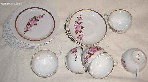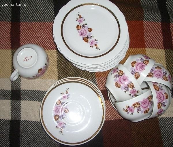 Чайный сервиз на 6 персон Дулево СССР 18 предметов- восьмидесятые годы прошлого века. В комплекте 6 чашек высотой 6 см, 6 блюдец 14 см, 6 десертных/пирожковых тарелочек 17 см. Объем чашек 200 млСервиз высокого качества lc 87г и отличной сохранности, ни на одном из предметов нет дефектов, сколов, трещин, позолота сияет, пользовались один раз