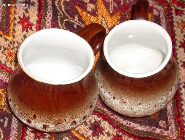 Набор приобретен в 1983 г включает 2 глиняные кружечки высота 9 см, диаметр 9,5 см