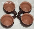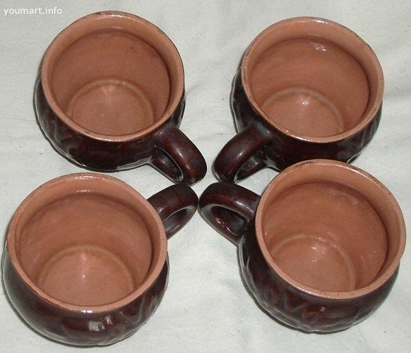 Набор Борисовка приобретен в середине 90-х г включает 4 глиняные кружечки высота 7 см, диаметр 8 см