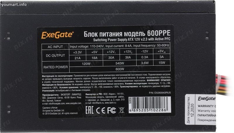 Продам Рабочий, компактный (150 x 86 x 140 мм) блок питания ExeGate 600 Вт Вт (любые проверки)в родной коробке по причине покупки более мощного на 1000.