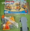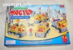 В наборе машинки с подъемной люлькой – детали машинки, два конуса, человечек, дорожный знак,наклейки, маячок мигающий, колеса резиновые