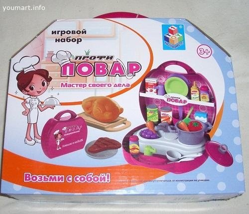 Это удобный чемоданчик, который превращается в мини-плиту с конфоркой, мойкой и навесной полочкой, а все предметы (посуда и продукты) высочайшего качества , обладают реалистичным внешним видом.