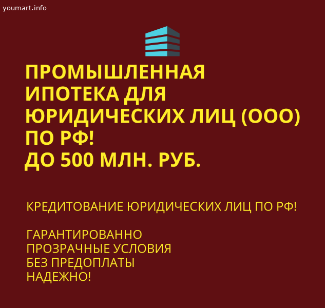 Поможем в получении банковского кредита: Промышленной ипотеки, одабриваем кредиты на поддержку и развитие Вашего бизнеса. Работаем с юридическими лицами ( ООО), оказываем полное сопровождение.