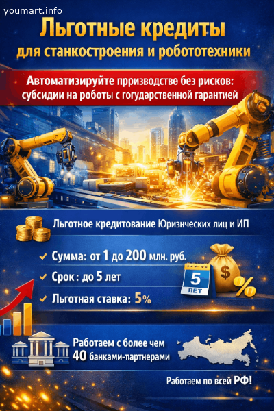 - Программа на покупку промышленной робототехники. Льготная процентная ставка 5 % годовых;