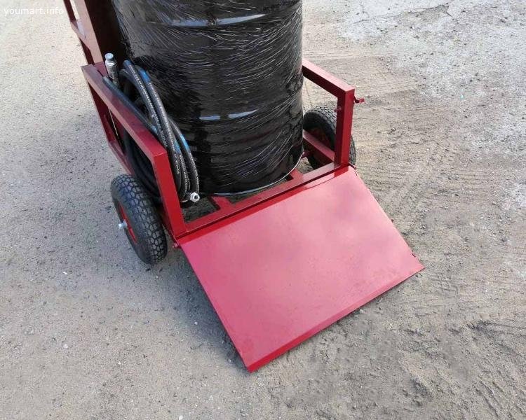 Рамная трехколесная тележка, на которую установлен гудронатор, обеспечивает его мобильность на строительном объекте. Забор битумной эмульсии осуществляется из 200-литровой бочки. Для удобства установки бочки на раму, тележка оборудована откидным трапом.