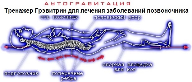 Тренажер для лечения позвоночника купить, заказать Грэвитрин от производителя. Аутогравитационный специализированный тренажер-кушетка Грэвитрин для лечения заболеваний позвоночника (остеохондроз, сколиоз 1-4 степени, межпозвонковая грыжа диска, грыжа шморля, радикулит, протрузии, компрессионный перелом позвоночника) Безопасный и эффективный тренажер для осанки спины в домашних условиях. Аутогравитационный тренажер Грэвитрин оснащен системой микровибрационной волны и подогрева. Основные преимущества устройства тренажерного аутогравитационного Грэвитрин - Растяжение позвоночника на 1, 5 - 2, 5см за одну процедуру + Восстановление анатомически правильной формы позвоночника + Формирование "Королевской" осанки + Устранение боли, напряжения, усталости + Расслабление мышц спины, шейного отдела позвоночника + Высокая комфортность состояния человека во время процедуры + Грэвитрин рекомендуется для применения В реабилитационных и спортивных центрах + В профилакториях, домах отдыха + В санаторно-курортных учреждениях. Покупка тренажеров Грэвитрин в Яндекс Сплит любой модификации. Приобретение для самозанятых по соцконтракту с предоставлением документов для соцзащиты. Тренажер-кушетка тракционная для лечения позвоночника "Грэвитрин-комфорт плюс Вибро" от производителя купить, заказать. Грэвитрин (аутогравитационная кушетка) - аппарат для дозированного, сегментарного, безболезненного вытяжения позвоночника. Лечение и профилактика дегенеративно - дистрофических заболеваний (остеохондроз шейного, грудного, пояснично - крестцового отделов позвоночника, сколиоз 1-4 степени, радикулит, грыжи дисков МПД, протрузии). Реабилитация после компрессионных переломов позвонков и межпозвоночных грыж. Аппарат "скорой помощи" при корешковом синдроме. Применяется для лечения, отдыха и релаксации в медицинских учреждениях, санаториях, профилакториях, реабилитационных, оздоровительных центрах, фитнес-клубах, саунах, банях и в домашних условиях. Аутогравитационная кушетка Гэвитрин является одним из базовых элементов RELAX-технологий и может использоваться как дополнение к SPA-процедурам. Безопасный и эффективный тренажер для растягивания позвоночника в домашних условиях. Безопасный и эффективный тренажер для растягивания позвоночника в домашних условиях. Аутогравитационный тренажер Грэвитрин оснащен системой микровибрационной волны и подогрева. Основные преимущества устройства тренажерного аутогравитационного Грэвитрин - Растяжение позвоночника на 1,5 - 2,5 см за одну процедуру Восстановление анатомически правильной формы позвоночника Формирование "Королевской" осанки Устранение боли, напряжения, усталости Расслабление мышц спины, шейного отдела позвоночника Высокая комфортность состояния человека во время процедуры Грэвитрин рекомендуется для применения В реабилитационных и спортивных центрах В профилакториях, домах отдыха В санаторно-курортных учреждениях В салонах красоты В саунах и банях На производстве в комнатах отдыха В домашних и дачных условиях. Доставка тренажеров Грэвитрин по всей России бесплатно на дом - Оплата тренажера Грэвитрин любой модификации при получении по всей России наличными при доставке. Доставка в Казахстан, Беларусь, Армению, Киргизию бесплатно на дом.